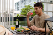 Azji para świętować imprezę toasting kieliszek wina w restauracji.