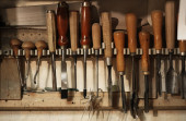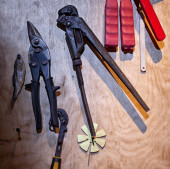 zestaw narzędzi roboczych na tle statku