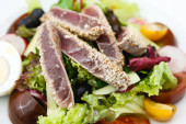 Zdjęcie "nicoise świeżego tuńczyka i warzywa" może być wykorzystywane do celów osobistych i komercyjnych zgodnie z warunkami zakupionej licencji Royalty-free. Obraz jest dostępny do pobrania w jakości wysokiej rozdzielczości do 5760x3840.