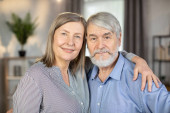 Zdjęcie "Szczęśliwa para dojrzałych w miłości pozowanie do kamery z prezentem świątecznym w urządzone wnętrze domu z piękną choinką na tle" może być wykorzystywane do celów osobistych i komercyjnych zgodnie z warunkami zakupionej licencji Royalty-free. Obraz jest dostępny do pobrania w jakości wysokiej rozdzielczości do 5760x3840.