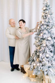 Zdjęcie "Rodzina trzech pokoleń razem, koncepcja świąt Bożego Narodzenia. Szczęśliwa wesoła rodzina świętuje zimowe wakacje w przytulnym pokoju urządzone światło, picie szampana" może być wykorzystywane do celów osobistych i komercyjnych zgodnie z warunkami zakupionej licencji Royalty-free. Obraz jest dostępny do pobrania w jakości wysokiej rozdzielczości do 5760x3840.
