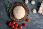 Zdjęcie "Składniki do produkcji pizzy - ciasto, ser mozzarella, pomidory, grzyby i bazylia na drewnianym tle. Wolne miejsce na tekst. Wysokiej jakości zdjęcie" może być wykorzystywane do celów osobistych i komercyjnych zgodnie z warunkami zakupionej licencji Royalty-free. Obraz jest dostępny do pobrania w jakości wysokiej rozdzielczości do 5760x3840.