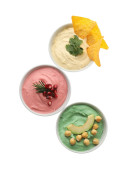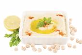 Arabski hummus tradycyjnych płyt z różnymi dodatkami
