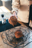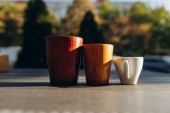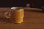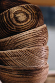 Ręcznie robiona drewniana zastawa stołowa na półce