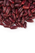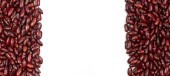 Stos czerwonej fasoli nerki po lewej izolowane na białym tle z miejsca kopiowania.