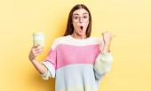 Zdjęcie "ładna kobieta czuje się jak szczęśliwy i podekscytowany geniusz po realizacji pomysłu, radośnie podnosząc palec, eureka!" może być wykorzystywane do celów osobistych i komercyjnych zgodnie z warunkami zakupionej licencji Royalty-free. Obraz jest dostępny do pobrania w jakości wysokiej rozdzielczości do 5760x3840.