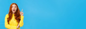 Zdjęcie "ruda głowa ładna kobieta wyglądająca zdumiewająco z niedowierzaniem, wskazując na obiekt na boku i mówiąc wow, niewiarygodne" może być wykorzystywane do celów osobistych i komercyjnych zgodnie z warunkami zakupionej licencji Royalty-free. Obraz jest dostępny do pobrania w jakości wysokiej rozdzielczości do 5760x3840.