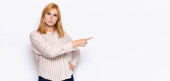 Zdjęcie "ruda głowa ładna kobieta czuje się jak geniusz trzymając palec dumnie w górze po uświadomieniu sobie świetny pomysł, mówiąc eureka" może być wykorzystywane do celów osobistych i komercyjnych zgodnie z warunkami zakupionej licencji Royalty-free. Obraz jest dostępny do pobrania w jakości wysokiej rozdzielczości do 5760x3840.