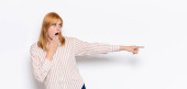 ruda głowa ładna kobieta czuje obrzydzenie i mdłości, wycofuje się od czegoś paskudnego, śmierdzącego lub śmierdzącego, mówiąc fuj