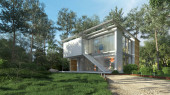 Zdjęcie "3D renderowania duży współczesny dom na wsi" może być wykorzystywane do celów osobistych i komercyjnych zgodnie z warunkami zakupionej licencji Royalty-free. Obraz jest dostępny do pobrania w jakości wysokiej rozdzielczości do 5760x3840.