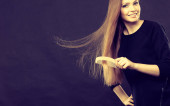 portret pięknej młodej kobiety z piękna długie proste