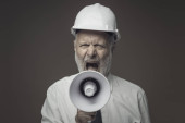 Zdjęcie "Zły agresywny biznesmen korporacyjny krzyczy przed kamerą, jest zestresowany i sfrustrowany" może być wykorzystywane do celów osobistych i komercyjnych zgodnie z warunkami zakupionej licencji Royalty-free. Obraz jest dostępny do pobrania w jakości wysokiej rozdzielczości do 5760x3840.