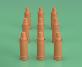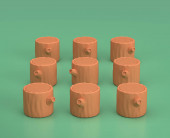 wiele metalowych kanistrów kolejność siatki na zielonym tle, monochromatyczne pojedyncze płaskie kolory, renderowanie 3d