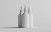 Trzy metalowe pojemniki na zielonym tle, monochromatyczne pojedyncze płaskie kolory, renderowanie 3d