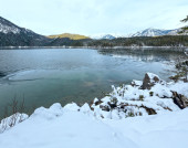 Góry ze śniegiem wzdłuż wybrzeża na Morzu Norweskim