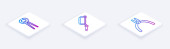Toporek izometryczny, szczypce i dłuto drewniane na niebieskim tle, warsztat jednokolorowy i narzędzie DIY, renderowanie 3D