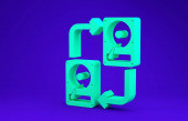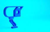 Izometryczna wiertarka i piła taśmowa na niebieskim tle, warsztat jednokolorowy i narzędzie DIY, renderowanie 3D