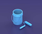 Zdjęcie "Izometryczne wiadro farby, miotła i wałek do malowania na niebieskim tle, warsztat jednokolorowy i narzędzie DIY, renderowanie 3D" może być wykorzystywane do celów osobistych i komercyjnych zgodnie z warunkami zakupionej licencji Royalty-free. Obraz jest dostępny do pobrania w jakości wysokiej rozdzielczości do 5760x3840.