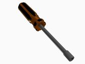 Ciemnoszare dłuto drewniane na czarnym tle, warsztat jednokolorowy i narzędzie DIY, renderowanie 3d