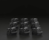 Ciemnoszara prasa wiertarska na czarnym tle, warsztat jednokolorowy i narzędzie DIY, renderowanie 3d