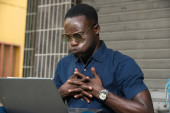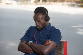 Zdjęcie "młody człowiek siedzi na zewnątrz i patrzy w kamerę." może być wykorzystywane do celów osobistych i komercyjnych zgodnie z warunkami zakupionej licencji Royalty-free. Obraz jest dostępny do pobrania w jakości wysokiej rozdzielczości do 5760x3840.