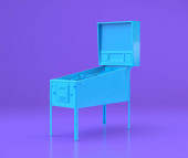 Blue arcade gun game cabinet, vintage retro automat do gier zręcznościowych, szafka w płaskim fioletowym pokoju, gry, gry retro, stara moda, renderowania 3D, centrum rozrywki