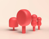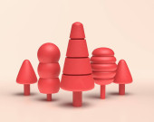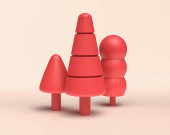 Grupa drzew z gąsienicy drzewa, ułożone drzewo filiżanki, Yoshi drzewa, 3d ikona, stałe płaskie kolory na białym tle, 3d Rendering, do projektowania
