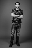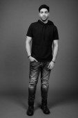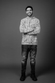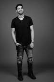 Zdjęcie "młody przystojny brodaty indyjski człowiek na szarym tle" może być wykorzystywane do celów osobistych i komercyjnych zgodnie z warunkami zakupionej licencji Royalty-free. Obraz jest dostępny do pobrania w jakości wysokiej rozdzielczości do 5760x3840.