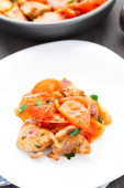 Zdjęcie "smażone wieprzowina z pomidorami" może być wykorzystywane do celów osobistych i komercyjnych zgodnie z warunkami zakupionej licencji Royalty-free. Obraz jest dostępny do pobrania w jakości wysokiej rozdzielczości do 5760x3840.