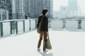 Azji Tajski Backpacker kobieta podróżnik czeka na pociąg na peronie.