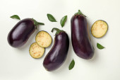 Pojęcie surowych warzyw z bakłażanami na białym tle