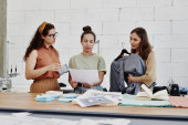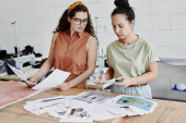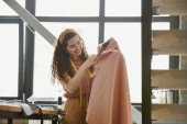 Zdjęcie "Młoda radosna kreatywna projektantka ubrań patrząca na wyświetlacz laptopa czekając na nowych klientów i pracując nad kolekcją mody" może być wykorzystywane do celów osobistych i komercyjnych zgodnie z warunkami zakupionej licencji Royalty-free. Obraz jest dostępny do pobrania w jakości wysokiej rozdzielczości do 5760x3840.