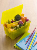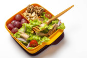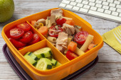 Zdjęcie "Obiad w miejscu pracy zdrowy makaron z tuńczykiem, pomidorami wiśniowymi, marchewką, ogórkiem w pudełku na lunch na stole roboczym. Domowe jedzenie dla koncepcji biurowej" może być wykorzystywane do celów osobistych i komercyjnych zgodnie z warunkami zakupionej licencji Royalty-free. Obraz jest dostępny do pobrania w jakości wysokiej rozdzielczości do 5760x3840.