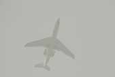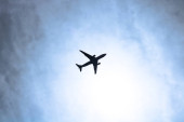 Samolot odrzutowy na tle zachmurzonego nieba, lotu i lądowania