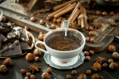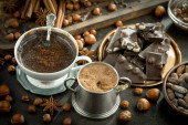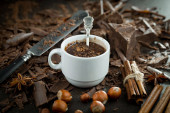 Zdjęcie "Ciemna czekolada w kompozycji z ziarnem kakaowym i orzechami, na starym tle." może być wykorzystywane do celów osobistych i komercyjnych zgodnie z warunkami zakupionej licencji Royalty-free. Obraz jest dostępny do pobrania w jakości wysokiej rozdzielczości do 5760x3840.