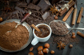 Zdjęcie "Kawałki ciemnej czekolady i ziarna kakao w składzie na starym tle" może być wykorzystywane do celów osobistych i komercyjnych zgodnie z warunkami zakupionej licencji Royalty-free. Obraz jest dostępny do pobrania w jakości wysokiej rozdzielczości do 5760x3840.