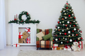 Choinka z kominkiem wnętrza domu nowy rok