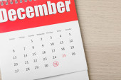 Odwróć kalendarz i świąteczne dekoracje na drewnianym stole. Wakacyjne odliczanie