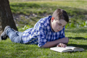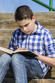 młody chłopiec czytanie książki