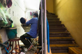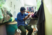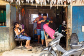 Zdjęcie "Phnom Penh, Phnom Penh / Kambodża - 5 października 2016: Zdjęcie ulicznego zakładu fryzjerskiego w Phnom Penh. Zapewniają również czyszczenie uszu. Czyściciel uszu z klientem." może być wykorzystywane do celów osobistych i komercyjnych zgodnie z warunkami zakupionej licencji Royalty-free. Obraz jest dostępny do pobrania w jakości wysokiej rozdzielczości do 5760x3840.
