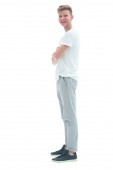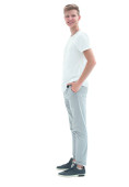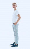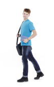 w pełnym wzroście. uśmiech facet pewnie idzie do jego cel.