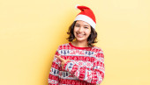 Ładna kobieta w kapeluszu Mikołaja. Koncepcja Bożego Narodzenia