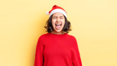 Zdjęcie "Ładna kobieta w kapeluszu Mikołaja. Koncepcja Bożego Narodzenia" może być wykorzystywane do celów osobistych i komercyjnych zgodnie z warunkami zakupionej licencji Royalty-free. Obraz jest dostępny do pobrania w jakości wysokiej rozdzielczości do 5760x3840.