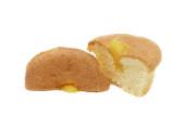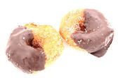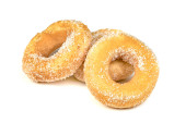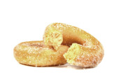 Ugryziony pączek pierścień cukrowy izolowany na białym tle