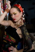 portret dziewczynki z wieczorem makijaż i biżuterię