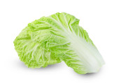 Świeże liście kapusty chińskiej izolowane na białym tle, zielony wzór liści