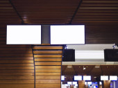 ogromny ekran zewnętrzny do reklam i reklam. duży pusty czarny cyfrowy ekran billboardu na budynku, makieta do projektu. reklamy streeet.