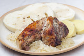 powoli pieczona jagnięcina na czosnku z ziemniakami