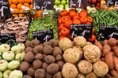 Duży wybór świeżych warzyw na sprzedaż na targu w Wiedniu, Austria