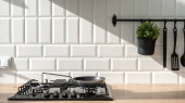 Zdjęcie "Concept of holiday breakfast. Vertical view of cozy kitchen in loft style interior with tablecloth, served plates and home decor on dining table near copy space wall, against cupboards furniture" może być wykorzystywane do celów osobistych i komercyjnych zgodnie z warunkami zakupionej licencji Royalty-free. Obraz jest dostępny do pobrania w jakości wysokiej rozdzielczości do 5760x3840.